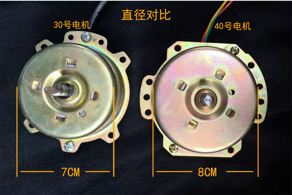 40號電機(大電機),40號電機直徑一般8厘米,轉(zhuǎn)速快,風(fēng)力大,散熱好,壽命長,但成本相對高。