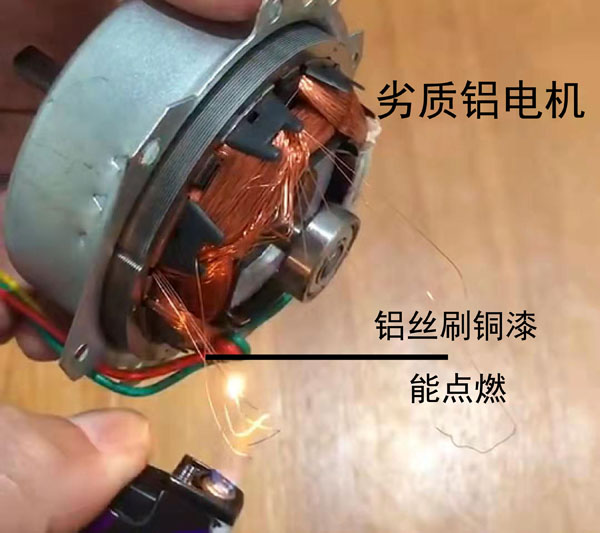 一般30號鋁電機電機,成本8-9元,質(zhì)量差,低價位浴霸用該電機較多,但30號全銅滾軸電機除外。劣質(zhì)小鋁電機內(nèi)絲,用打火機可以直接點燃。如下圖