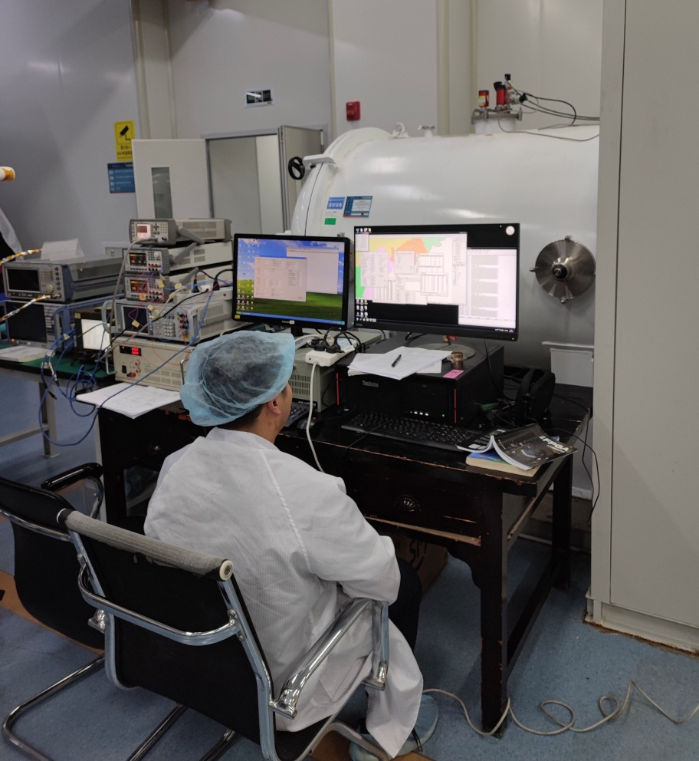 7月17日凌晨三點,西光廠內一片寂靜,路燈似乎也熱到發(fā)著微弱的光,偶爾聽得到一聲兩聲狗的吠叫。此時,熱真空實驗室依然燈火通明,伴隨著機器聲轟鳴作響,王玨和姚佳豪喝完第二杯咖啡,“掰開”上下眼皮,繼續(xù)守在設備前,緊緊盯著設備的功能和性能指標?!爸笜送耆弦蟆?!最后一個循環(huán)結束,王玨激動地說道。他和姚佳豪通宵達旦地開展大量試驗驗證, 經過4個白天和黑夜,最終順利完成了某項目熱真空試驗。